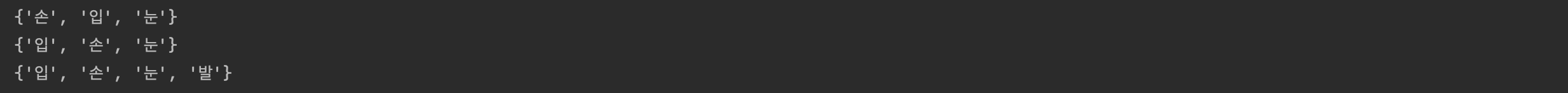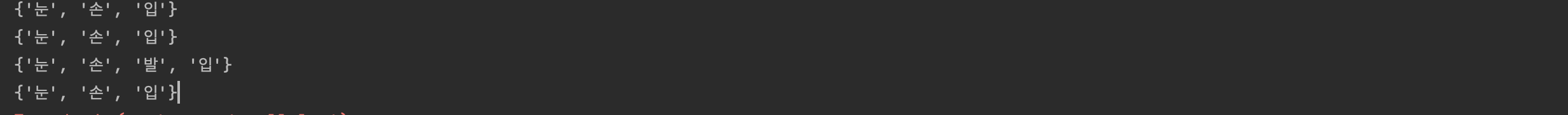 human_test = set(['눈', '손', '입', '입'])